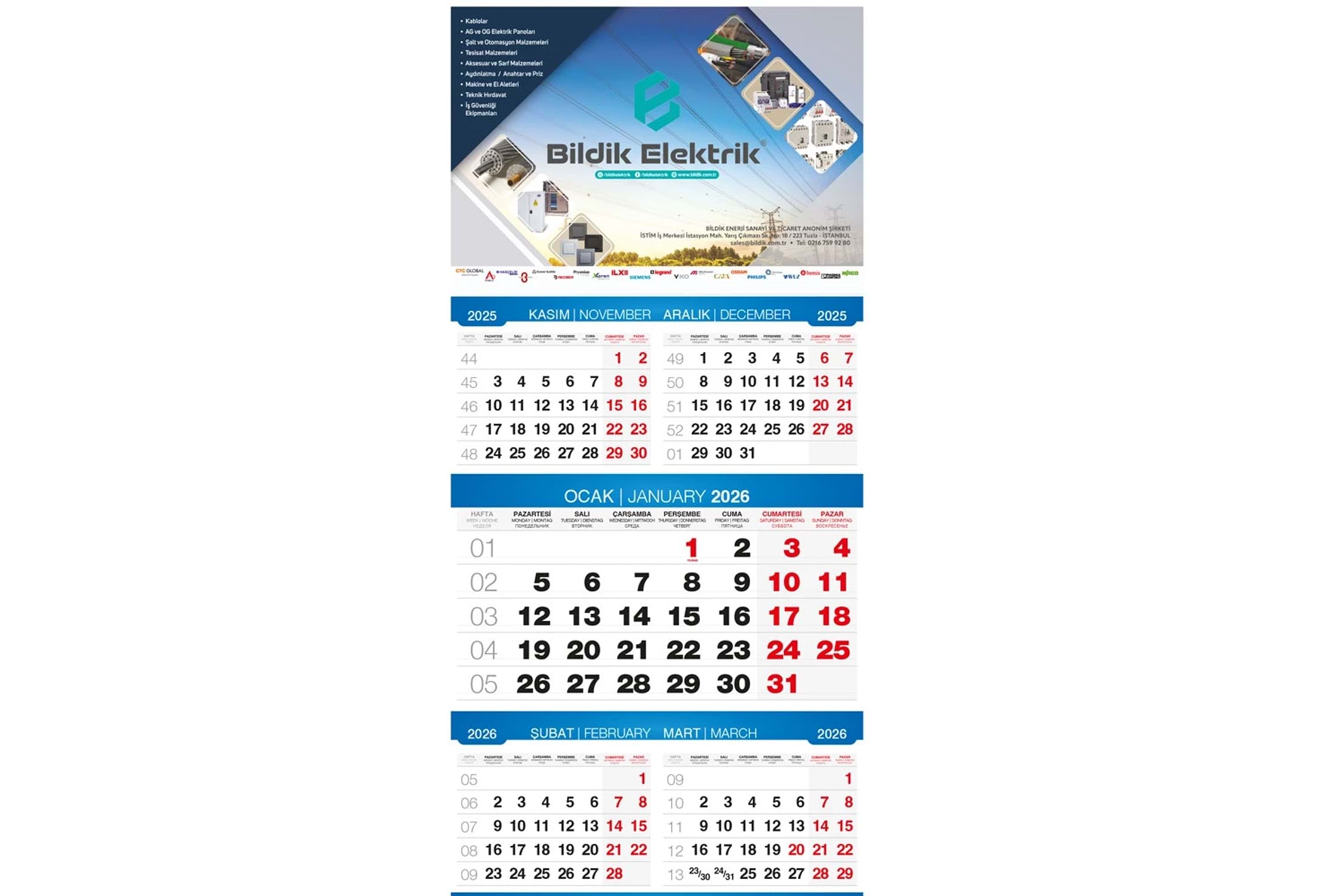 * Tek Parça Spiralli * Takvim Ebadı: 33 x 73 cm * Alt Karton: 350gr. A.Bristol * Reklam Alanı: 33 x 23 cm * Blok Ebat: 33 x 48 cm * Yaprak Kağıdı: 80gr. 1.Hamur