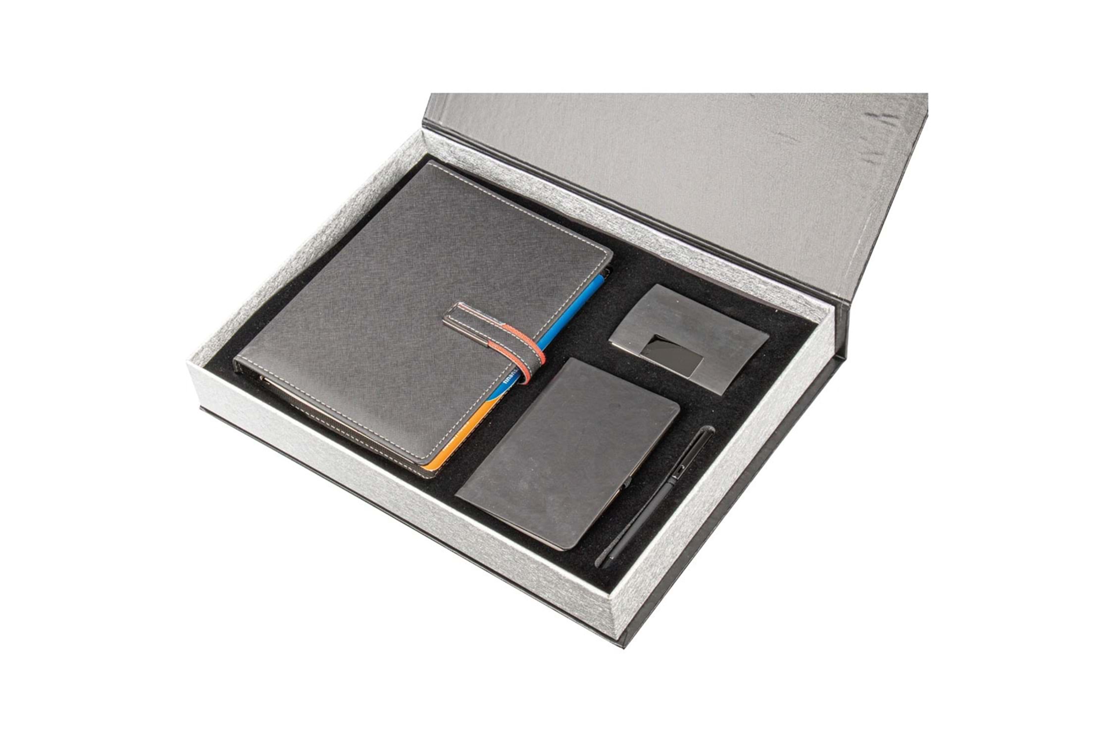 * Termo Deri Organizer 18 x 23 cm (Trabzon) * Defter 9,5 x 14 cm (İstiklal) * Metal Kalem Roller (0555-490) * Deri ve Metal Kartvizitlik (KVZ-007) * Kutu: Cilt Bezi * Bu sette talep edilen diğer organizer çeşitleride kullanılabilir.